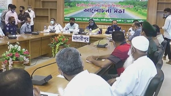 মাদারীপুর প্রতিনিধিঃ মাদারীপুরে জাতীয় নিরাপদ সড়ক দিবসে আলোচনা সভা অনুষ্ঠিত হয়েছে। শুক্রবার সকালে জেলা প্রশাসকের সম্মেলন কক্ষে অনুষ্ঠিত হয় এই আলোচনা সভা। বিআরটিএ’র উদ্যোগে জেলা প্রশাসন, সড়ক বিভাগ, জেলা সড়ক পরিবহন শ্রমিক ইউনিয়ন, বাস ও মিনিবাস মালিক গ্রুপের নেতাদের পাশাপাশি বিভিন্ন শ্রেণিপেশার মানুষ এতে অংশ নেয়। আলোচনা সভায় বক্তারা, সড়কে অবৈধ যানবাহন বন্ধের দাবি জানান।