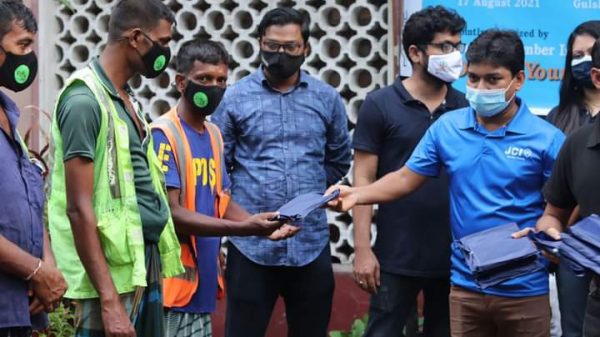 নিজস্ব প্রতিবেদকঃ জেসিআই ঢাকা ইয়াং এবং ঢাকা ওয়েস্ট -এর উদ্যোগে রেইনকোর্ট বিতরণ করা হয়। মঙ্গলবার (১৭ই আগস্ট) গুলশান ২ আবাসিক এলাকায় প্রায় শতাধিক রিকশাওয়ালা দের মাঝে রেইন কোট বিতরন করা হয় জানা যায়,রিকশা চালিয়ে জীবিকা নির্বাহ করছে তাদের জন্য ঝুম বৃষ্টিতে রিকশা চালানো কষ্টকর,সেই সাথে এই বৃষ্টিতে ভেজার কারণে তারা বিভিন্ন সংক্রামক ব্যাধিতেও আক্রান্ত হয়ে