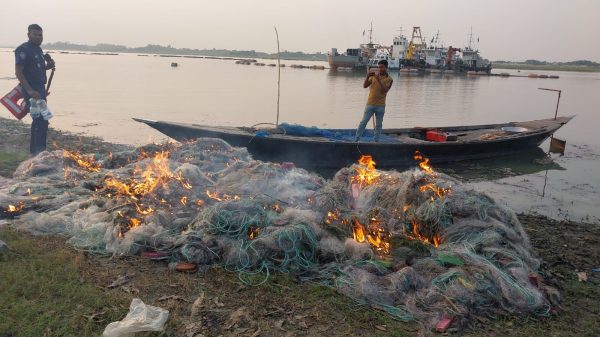 মাদারীপুর প্রতিনিধি: মাদারীপুর জেলার শিবচরের পদ্মানদীতে অভিযান চালিয়ে একটি মাছ ধরার ট্রলারসহ ৭৭ হাজার মিটার জাল জব্দ করেছে উপজেলা মৎস অফিস। শনিবার(১৪ অক্টোবর) সকাল থেকে রোববার দুপুর পর্যন্ত এ অভিযান চালানো হয়। শিবচর মৎস অফিস সূত্রে জানা গেছে, শনিবার থেকে রোববার দুপুর পর্যন্ত নদীর বিভিন্ন স্থানে অভিযান চালায় মৎস অফিস ও নৌপুলিশ। এ সময় নদীর