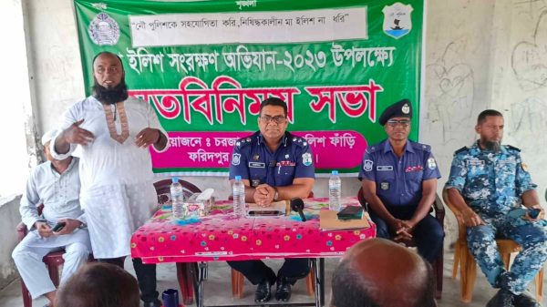 প্রতিনিধি, শিবচর: মাদারীপুর জেলার শিবচরে মা ইলিশ সংরক্ষনে চর জানাজাত নৌ পুলিশ ফাঁড়ির আয়োজনে এক মত বিনিময় সভা অনুষ্ঠিত হয়েছে। রোববার(৮ অক্টোবর) দুপুরে শিবচরের পদ্মাপাড়ের চরজানাজাত ইউনিয়নের সামাদ খান বাজারে এ সভা অনুষ্ঠিত হয়। ‘নৌ পুলিশকে সহযোগিতা করি, নিষিদ্ধকালীন মা ইলিশ না ধরি’ স্লোগানকে সামনে রেখে ইলিশের প্রজনন মৌসুমে মা ইলিশ সংরক্ষণের জন্য স্থানীয় জেলেদের