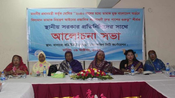 টঙ্গী (গাজীপুর) প্রতিনিধি: নারী ও শিশু স্বাস্থ্যঝুঁকির বিষয়টিকে অগ্রাধিকার দিয়ে ধূমপান এবং তামাক ব্যবহার নিয়ন্ত্রণ আইনটির প্রস্তাবিত সংশোধনী দ্রুত সংসদে উত্থাপন এবং চলতি সংসদ অধিবেশনেই পাসের দাবিতে আলোচনা সভা অনুষ্ঠিত হয়েছে। সোমবার (৯ অক্টোবর) সকালে রাজধানীর খিলগাঁও বাসাবো কমিউনিটি সেন্টারে নারী মৈত্রীর আয়োজনে স্থানীয় সরকার প্রতিনিধিদের সঙ্গে “প্রধানমন্ত্রী কর্তৃক ঘোষিত ২০৪০ সালের মধ্যে তামাকমুক্ত বাংলাদেশ
