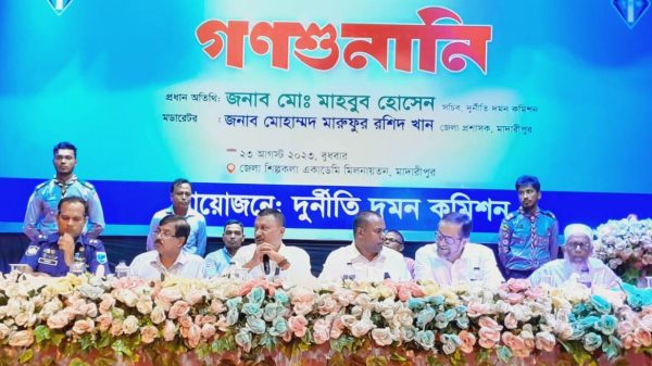 মাদারীপুর প্রতিনিধি: মাদারীপুরে দিন ব্যাপি দুদকের গণশুনানি অনুষ্ঠিত হয়েছে। কমিশনের সিদ্ধান্ত মতে বুধবার সকাল থেকে জেলা শিল্প কলা একাডেমিতে গণশুনানির আয়োজন করে দুর্নীতি দমন কমিশন, সমন্বিত জেলা কার্যালয়, মাদারীপুর। গনশুনানী ৩৮টি দপ্তরের বিরুদ্ধে ১০৭টি অভিযোগ আসে। এর মধ্যে ৩৬ টি সুনির্দিষ্ট অভিযোগ শুনানির জন্য সেবাপ্রার্থী জনসাধারণ সরাসরি উপস্থাপন করেছেন। উপস্থাপিত ৩৬ টি অভিযোগের মধ্যে মাদারীপুর
