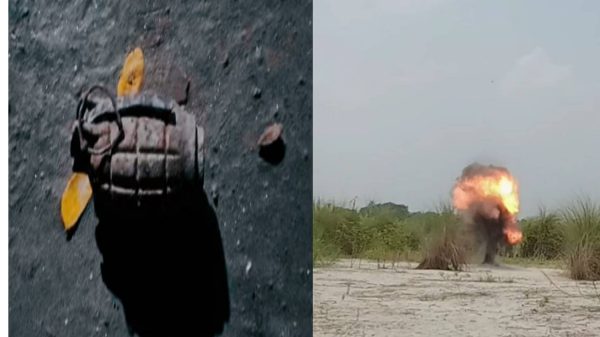 মাদারীপুর প্রতিনিধি: মাদারীপুরের শিবচরে ৩৩ বছর ধরে আলমারীতে রাখা গ্রেনেডটি ধ্বংস করেছে বোম ডিসপোজাল ইউনিট। আদালতের নির্দেশে বৃহস্পতিবার দুপুরে শিবচর থানার সামনের একটি পরিত্যক্ত জায়গায় তিনফুট গর্ত করে এটির বিস্ফোরণ ঘটানো হয়। এতে যোগ দেয় রাজধানী ঢাকা থেকে বিশেষজ্ঞরা। মাদারীপুরের শিবচর থানার ভারপ্রাপ্ত কর্মকর্তা (ওসি) মো. আনোয়ার হোসেন জানান, শিবচর উপজেলার সন্ন্যাসীরচর ইউনিয়নের রাজারচর গ্রামের