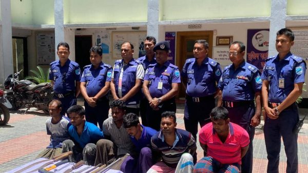 শিবচর(মাদারীপুর) প্রতিনিধিঃ মাদারীপুরের শিবচরে ডাকাতির প্রস্তুতিকালে আন্তঃজেলা ডাকাতদলের ৬ সদস্যকে গ্রেফতার করেছে শিবচর থানা পুলিশ। রোববার(২৩ জুলাই) দিনগত মধ্যরাতে উপজেলার কাঁঠালবাড়ী চার নং ফেরিঘাট সংলগ্ন সড়ক থেকে তাদের গ্রেফতার করে পুলিশ। এসময় ডাকাত সদস্যদের কাছ থেকে একটি চাইনিজ কুড়াল, ধারালো ছেনদা, লোহার তৈরী ছোরা, স্টিলের পাতের কুড়াল, এসএস পাইপ, লোহার রড, স্টিলের স্লাইরেঞ্জ জব্দ করে