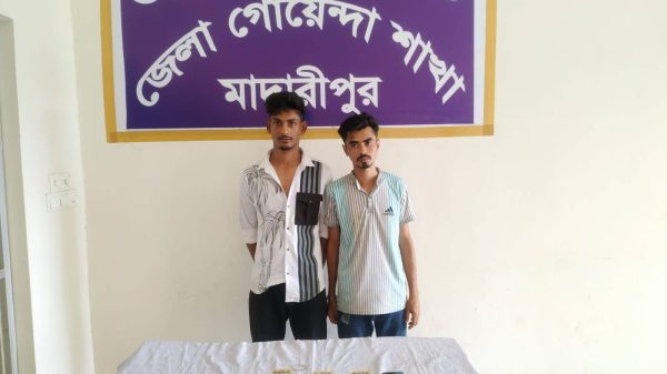 শিবচর (মাদারীপুর) প্রতিনিধি: মাদারীপুরের শিবচরে অভিযান চালিয়ে ১ লক্ষ ২০ হাজার টাকার জাল নোটসহ দুইজনকে গ্রেফতার করেছে মাদারীপুর জেলা গোয়েন্দা পুলিশ(ডিবি)। সোমবার(১২ জুলাই) রাত পৌনে ১১ টার দিকে উপজেলার উমেদপুর ইউনিয়নের কাবিলপুর এলাকা থেকে তাদের গ্রেফতার করা হয়। গ্রেফতারকৃতরা হলেন, ওই এলাকার মোতালেব হাওলাদারের ছেলে ইয়াছিন হাওলাদার(২৩) এবং দাদন মিয়ার ছেলে জোবায়ের মিয়া(২১)। জেলা গোয়েন্দা