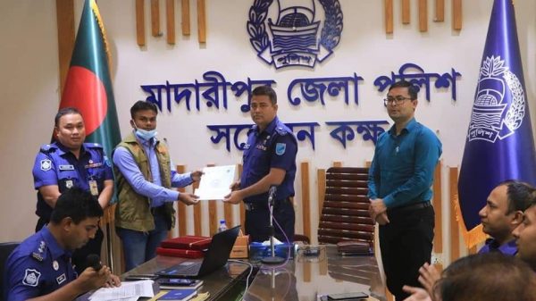 মাদারীপুর প্রতিনিধিঃ মাদারীপুর জেলা পুলিশ সুপারের কার্যালয়ের কনফারেন্স রুমে মাসিক অপরাধ পর্যালোচনা সভা (১৩ আগষ্ট) অনুষ্ঠিত হয়েছে। মাদারীপুর জেলা পুলিশ সুপার গোলাম মোস্তফা রাসেলের সভাপতিত্বে ২০২২ সালের জুলাই মাসের শ্রেষ্ঠ মাদক উদ্ধারকারী অফিসার নির্বাচিত হয়ে জেলা পুলিশ সুপার হাত থেকে শুভেচ্ছা স্মারক এবং নগদ অর্থ পুরস্কার গ্রহন করেন জেলার শ্রেষ্ঠ মাদক উদ্ধারকারী অফিসার জেলা গোয়েন্দা