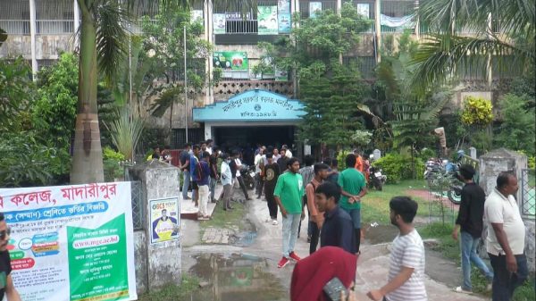 মাদারীপুর প্রতিনিধিঃ মাদারীপুরে চাঁদা না পেয়ে এক স্বর্ণ ব্যবসায়ীকে প্রকাশ্যে কুপিয়ে জখম করার অভিযোগ পাওয়া গেছে। আহত স্বর্ণ ব্যবসায়ী মুন্না জমাদ্দারকে হাসাপাতালে চিকিৎসা দেয়া হয়েছে। শনিবার বেলা সাড়ে ১১ টার দিকে মাদারীপুর পৌর এলাকার পুরানবাজারের স্বর্ণকারপট্টিতে এ ঘটনা ঘটে।এই ঘটনার একটি সিসিটিভি ফুটেজ সামাজিক যোগাযোগ মাধ্যমে ভাইরাল হয়েছে। ব্যবসায়ীর অভিযোগ ও পারিবারিক সুত্র জানায়, মাদারীপুর