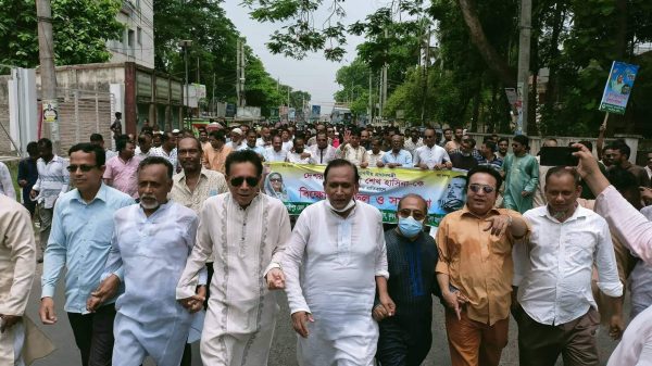 মাদারীপুর প্রতিনিধিঃ ছাত্রদলের সাধারণ সম্পাদক সাইফ মাহমুদ জুয়েল প্রধানমন্ত্রী শেখ হাসিনাকে নিয়ে কটূক্তি করার প্রতিবাদে মাদারীপুরে জেলা আওয়ামী লীগের উদ্যোগে বিক্ষোভ কর্মসূচি পালন করা হয়েছে।এতে জেলা আওয়ামী লীগের সাথে আওয়ামী লীগের সহযোগী অঙ্গ সংগঠনের নেতা ও কর্মীরা অংশগ্রহণ করেন। শনিবার (৪ জুন) বেলা সাড়ে ১১টার দিকে শহরের শকুনি লেকের স্বাধীনতা অঙ্গনের সামনে থেকে বিক্ষোভ মিছিলটি