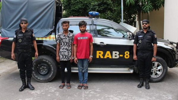 মাদারীপুর প্রতিনিধিঃ মাদারীপুরে ২১ কেজি ৭শ‘ গ্রাম গাঁজাসহ ২ মাদক ব্যবসায়ী গ্রেফতার করেছে র্যাব-৮ মাদারীপুর ক্যাম্প। শনিবার সন্ধায় র্যাবের একটি দল সদর উপজেলার খোয়াজপুর ইউনিয়নের ৮নং ওয়ার্ডের পখিরা এলাকার আছমত আলী খান সেতুর টোল প্লাজার পূর্ব পাশে সড়কে অভিযান পরিচালনা করে তাদের আটক কর।এসময় অভিযানকালে একটি পিকআপ ও ২১ কেজি ৭শ‘ গ্রাম গাঁজাসহ তাদের গ্রেফতার