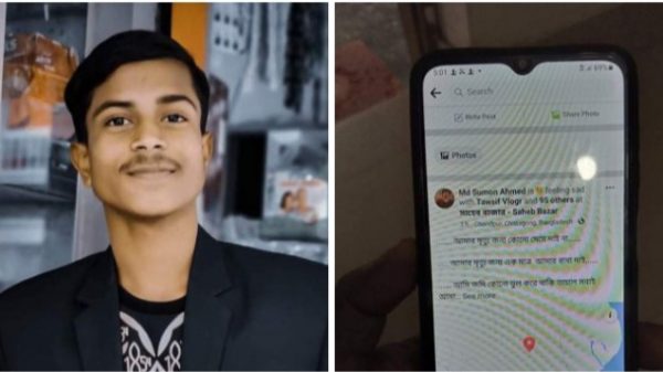 শিবচর ( মাদারীপুর) প্রতিনিধি মাদারীপুরের শিবচরে ফেসবুকে স্টাটাস দিয়ে সুমন চৌকিদার(১৬) নামের এক কিশোর আত্মহত্যা করেছে। রবিবার (২৭মার্চ) দুপুর দুইটার দিকে উপজেলার কুতুবপুর ইউনিয়নের সাহেব বাজার এলাকায় একটি দোকান থেকে ফ্যানের সাথে ঝুলন্ত অবস্থায় তার মরদেহ উদ্ধার করা হয়।ধারণা করা হচ্ছে প্রেমের সম্পর্কে বাঁধা দেয়ায় অভিমান করে আত্মহত্যার পথ বেছে নেয় কিশোর সুমন। ফেসবুকে সে